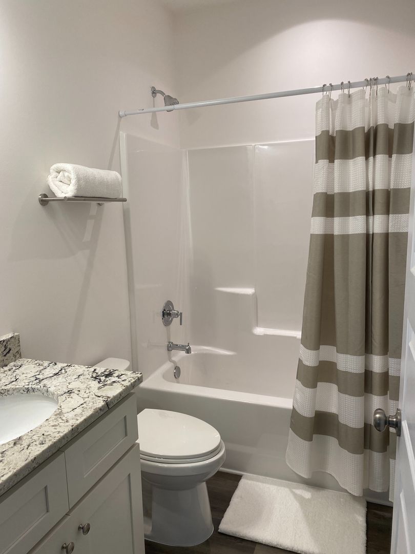 Enjoy easy living in this brand new 4 bedroom home. Luxury vinyl wood plank floor down stairs. Half bath down stairs, laundry room with washer and dryer hook ups. Kitchen with granite counter tops, coast white cabinets and stainless steel appliances. Eating area to the side that is open to the living room. Lots of windows and good natural light. Upstairs you find the bedrooms with a carpet floor. The master bedroom has walk in closet and private bathroom. Three other bedrooms share the full hall bath. Home seats on a large mature lot. Small fenced patio area coming soon. City is putting in sidewalk/bike path. Washer and dryer hook ups, Yard care tenant responsibility, pets case by case. Students considered with 3 years good rental history and co-signers.